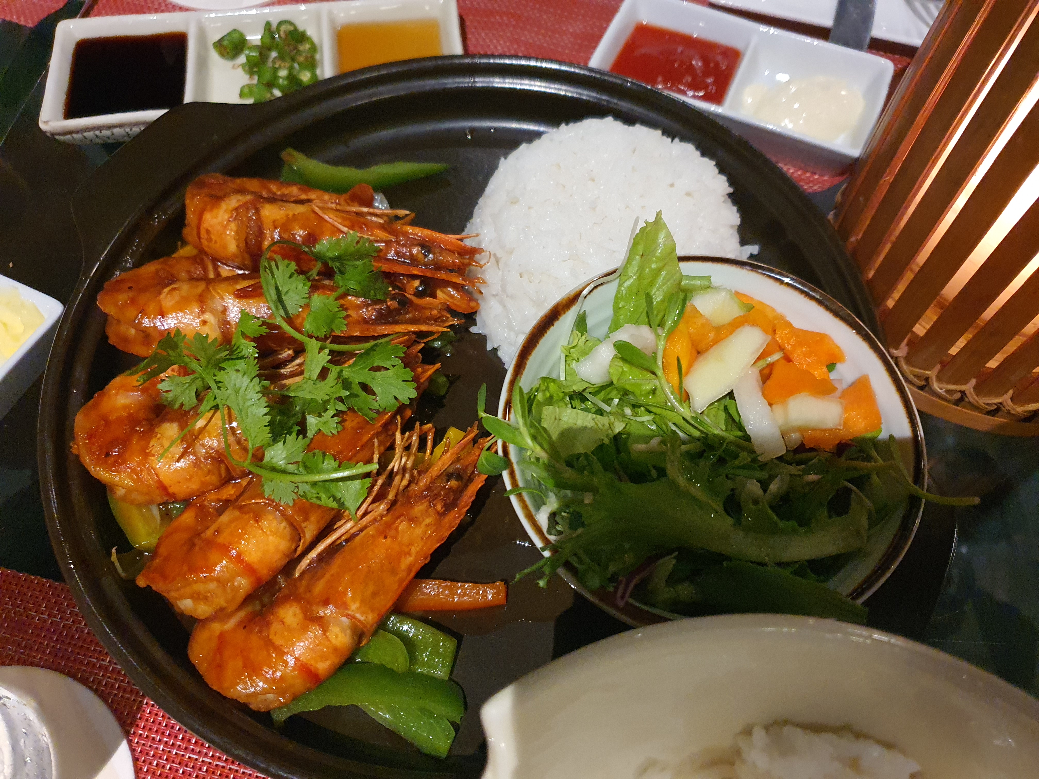 새우요리예요!!! 타이거 새우였었나.. 메뉴 이름이 정확히 기억은 안나지만 양념이 정말 맛있더라고요.
