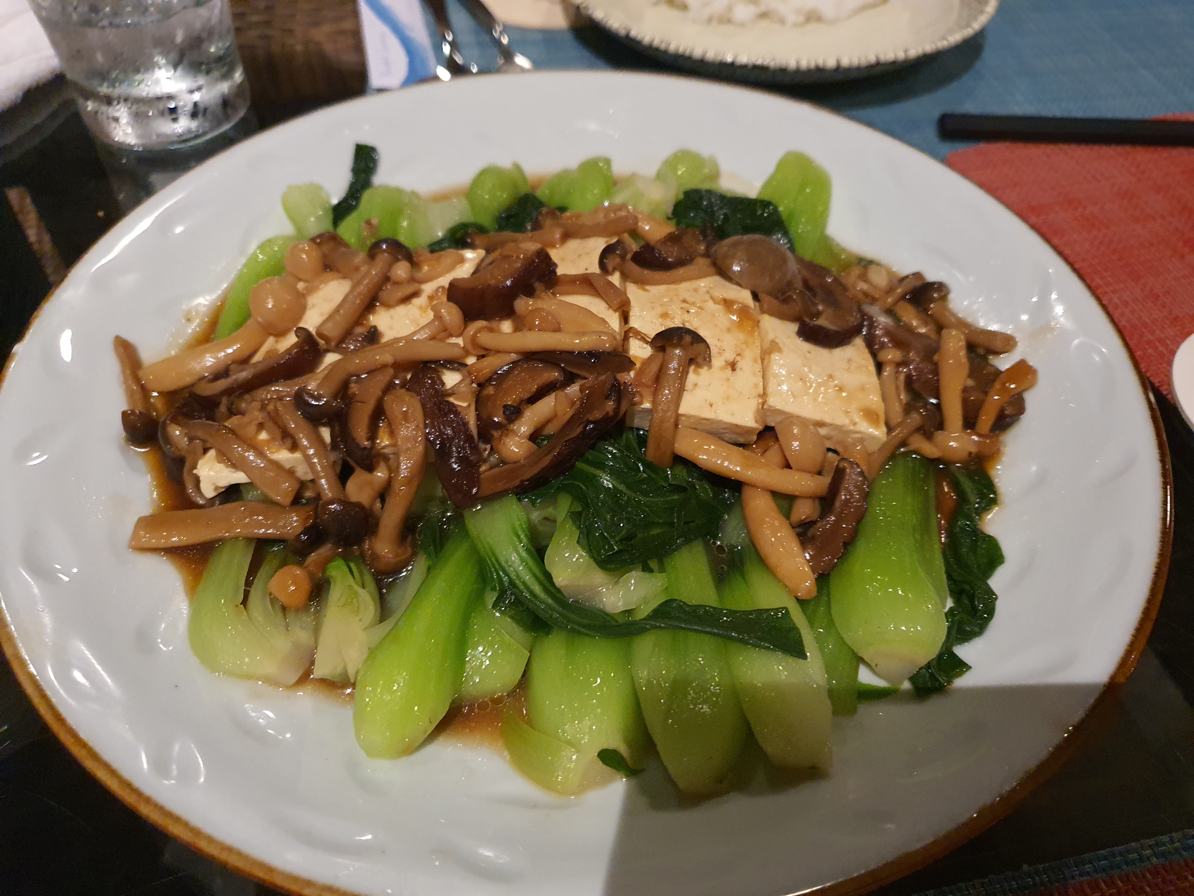 버섯, 두부, 청경재 볶음 요리였습니다. 건강 생각해서 주문했어요.