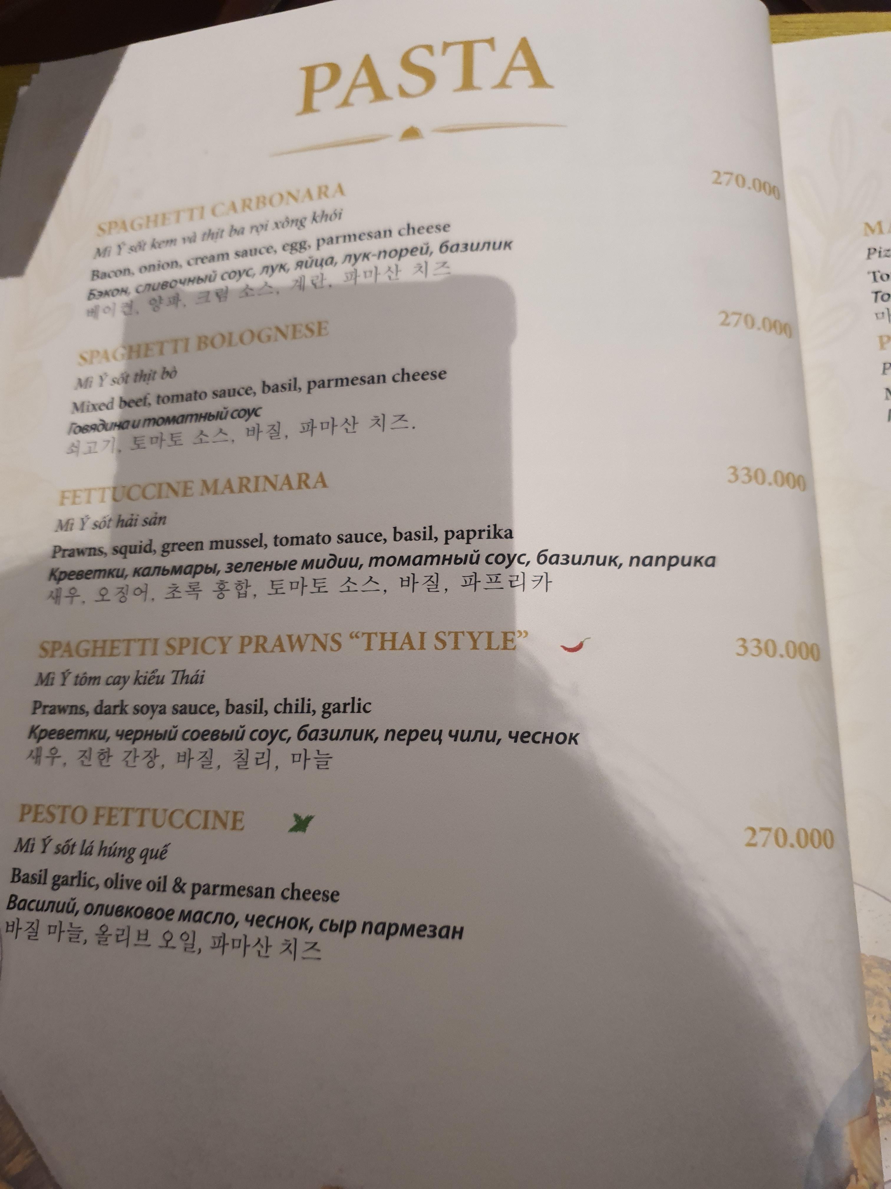 파스타와 피자도 한번 살펴봅니다~ 5성급이라 그런지 가격대가 아주 저렴하진 않아요 ㅎㅎ