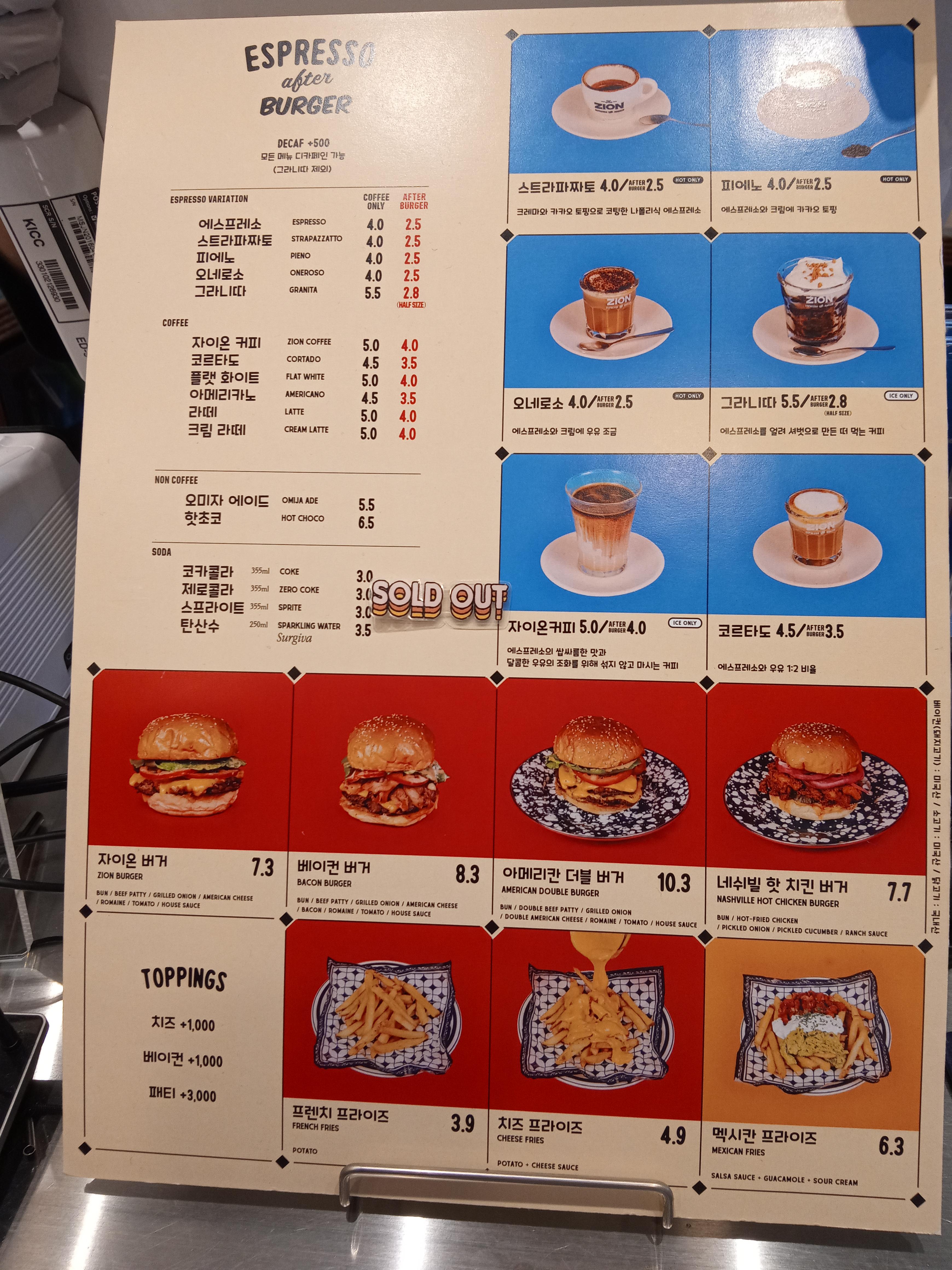 사실 자이온버거가 맛있다는 소문은 익히 들었지만 커피에 대한 후기가 잘 없어서 과연 어떤 커피길래 하는 궁금증이 먼저 앞섰다.