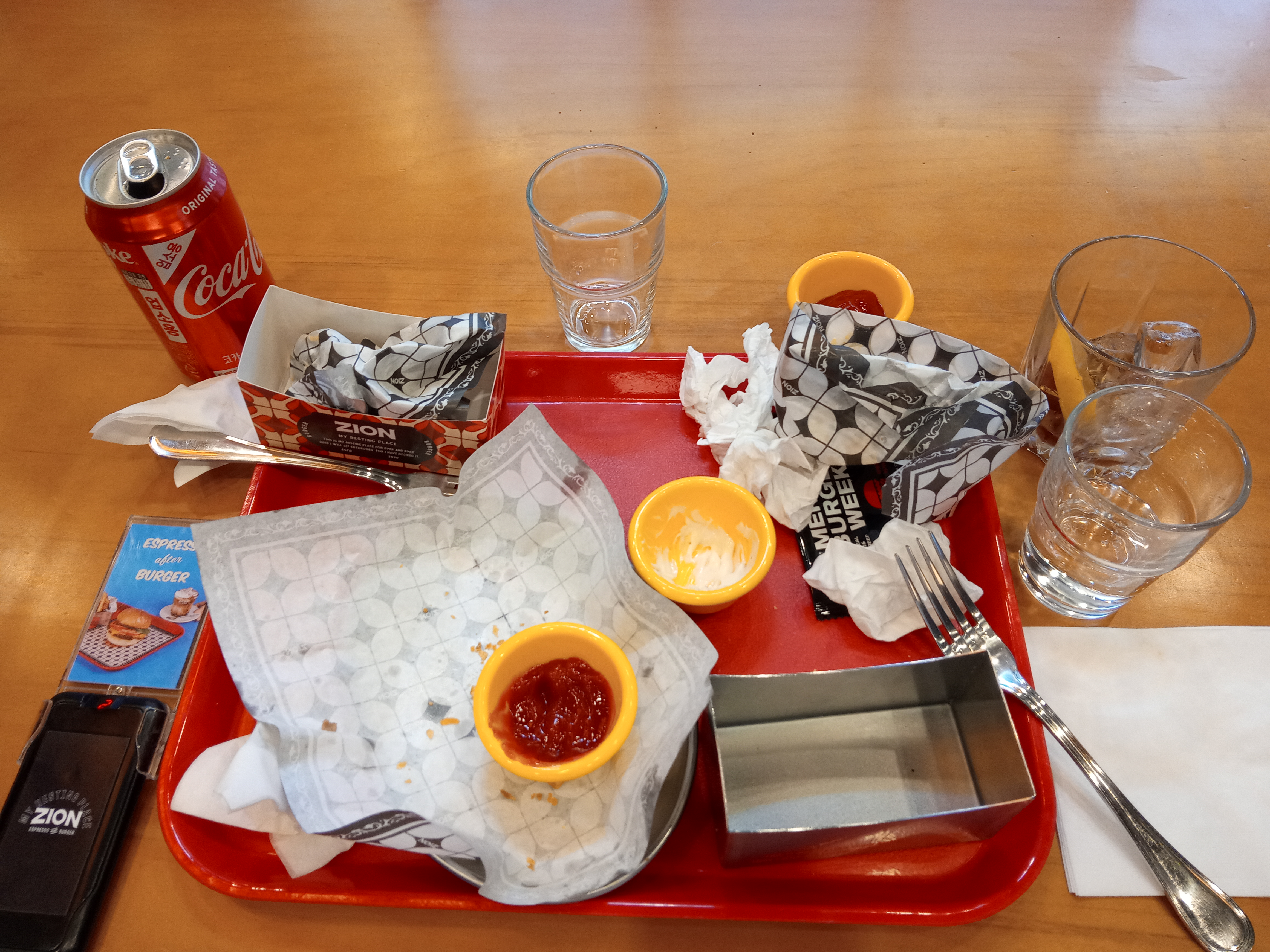 자이온버거는 강력했다. 참, 버거를 다 끝내고보니 버거가 이런 홀더에 담겨있네요. 깔끔한 식사를 도와주는 굿 아이디어 같다.